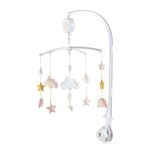 LOU - Baby-Musikmobile aus Baumwolle, rosa und weiß