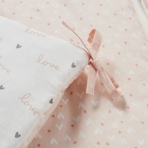 LILA - Babybett-Umrandung aus Baumwolle, weiß und rosa, gemustert
