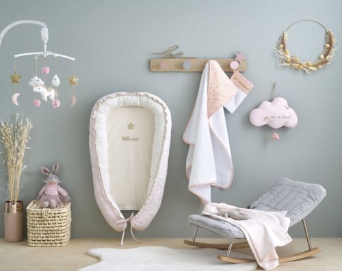 Verwöhnen Sie Ihr Kleines mit weichem Komfort, dank der Babywippe CELESTE mit hellgrauer Baumwoll-Bespannung. Wir lieben ihr kuscheliges Aussehen, sie wird Ihren kleinen Schatz ganz sanft hin und her wiegen. Mit der hellgrauen Farbe und den Füßen aus Metall und Buchenholz verbindet diese äußerst ästhetische Babywippe modernen Look mit zeitloser Farbe. Aufgrund des Befestigungssystems kann Ihr kleiner Liebling sich gut gesichert ausstrecken und spielen. So können Sie überall gemeinsame Momente genießen: Platzieren Sie diese hübsche Babywippe im Kinderzimmer, während Sie das Essen zubereiten in der Küche oder in Ihren Entspannungszeiten im Wohnzimmer. Klein und Groß werden mit Sicherheit begeistert sein!