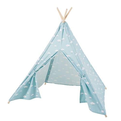 Deze blauwe tipi met wit wolkenmotief KOALA maakt het mogelijk voor je kleine schat om zijn eigen wereld te creëren. Perfect om verstoppertje te spelen en leuke verhalen te verzinnen. Deze tipi doet het ongetwijfeld goed bij je oogappel en zijn vriendjes. Deze tipi is samengesteld uit 6 stokjes om in de mooie stof met bewolkte patronen te schuiven en vervolgens aan de bovenkant met een koord aan elkaar te knopen. Gemakkelijk op te vouwen en te transporteren dankzij de opberghoes, je kan de tipi dan ook opstellen waar je zelf wil. Vul het geheel aan met een tapijt of een deken om een gezellige ruimte te creëren.