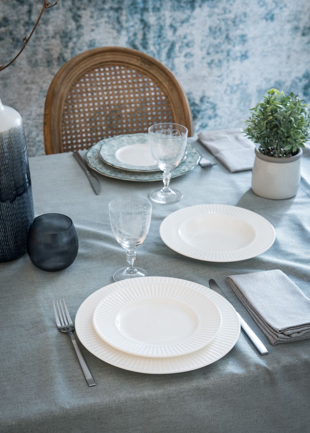 Toegevoegd aan mijn verlanglijst NouveauNatural Stone KLUANE - Bord van wit aardewerk met blauw streepjesmotief 8,99 €