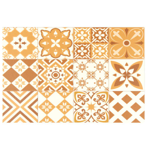 NOVA - Oker en wit tapijt van vinyl met cementtegelmotief