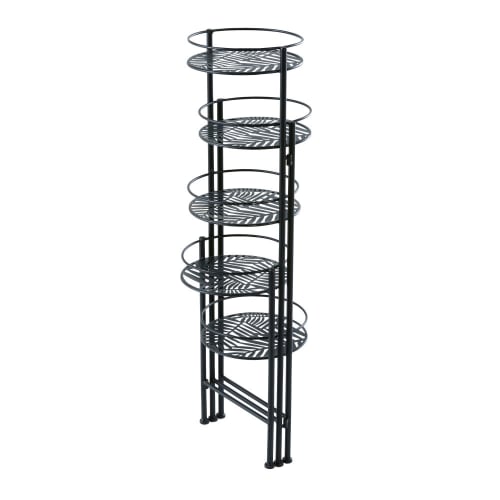 Niassa - Opengewerkte zwarte metalen plantenhouder met blaadjesmotief