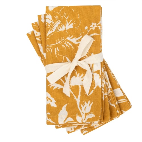 LUCCA - Servietten aus Bio-Baumwolle, gelb und weiß mit Pflanzendruckmotiv (x4)