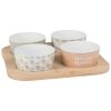 Wer neben dem Gaumen auch dem Auge eine Freude bereiten möchte, der wählt zum Präsentieren der Speisen und Getränke das passende Geschirr. Bunte Dessertgläser auf dem Serviertablett rund bieten dem Auge ein sinnliches Vergnügen. Wenn es weniger auffällig sein soll, dann bieten sich Schalen und Gläser mit zweifarbigem Design an. Sie sind mit Mustern bedruckt erhältlich, einfarbig oder mit netten Schriftzügen. Ein Aperitifkorb bietet neben den Schälchen eine geeignete Halterung zum Tragen und Bereitstellen. Wer gerne eine größere Auswahl an Naschereien bereitstellen möchte, der hat die Möglichkeit, auf ein Aperitiftablett mit vielen Schälchen zurückzugreifen. Wer lieber größere Portionen vorbereitet, für den lohnt das Tablett in geeigneter Größe. Für den natürlichen Look eignet sich ein Holztablett als Serviertablett. Viele kleine Dessertgläser auf einer Servierplatte sind praktisch bereitgestellt und die Gäste können bequem zugreifen. Tabletts aus Holz sind auch als Holztablett rund erhältlich. Ein rundes Tablett bietet zusammen mit runden Dessertschalen einen schönen Hingucker. Egal was Sie suchen: Ein Serviertablett rund, ein Serviertablett Holz, ein Aperitiftablett mit bunten Schalen oder Aperitifspieße, bei uns finden Sie ein umfangreiches Sortiment an dekorativen Produkten.