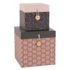 2 Kartonboxen, rosa und violett mit Druckmotiv
