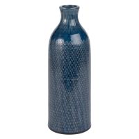 Bauchige Keramikvase mit Relief-Druckmuster, blau H30
