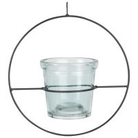 Glasübertopf, blau getönt mit Bügel aus schwarzem Metall H12