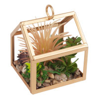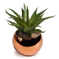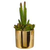 Künstliche Sukkulenten in goldfarbenem Topf