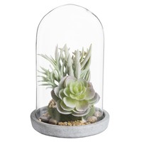 Künstliche Sukkulenten unter Glasglocke