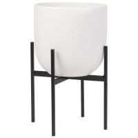 Übertopf auf Füßen aus weißer Keramik und schwarzem Metall H21