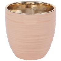 Übertopf aus Keramik, rosa glänzend und goldfarben H11