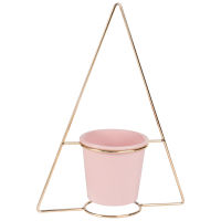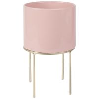 Übertopf mit Füßen aus rosa Keramik und goldfarbenem Metall H29