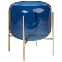 Vase aus blau getöntem Glas mit Füßen aus Messing H23