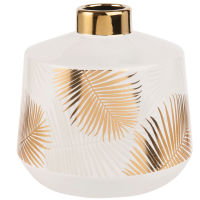 Vase aus weißer Keramik mit goldfarbenem Palmendruckmotiv H18