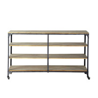 BROOKLYN – Konsolentisch im Industrial-Stil aus Metall und Tanne auf Rollen, anthrazit