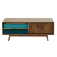 JANEIRO – TV-Möbel mit 2 Schubladen, aus Mangoholz, blau und grau