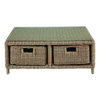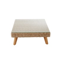 FIDJI – Gartencouchtisch aus Hartglas und Kunstharzgeflecht, B 77 cm