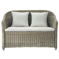 ST RAPHAËL – Gartensofa 2-Sitzer aus geflochtenem Kunstharz mit naturweißen Kissen