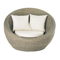 ST RAPHAËL – Gartenstuhl aus geflochtenem Kunstharz mit naturweißem Kissen