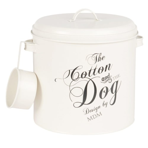 Club - Hundetrockenfutter-Box aus ecrufarbenem Metall, schwarz bedruckt