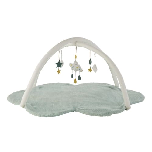 A partir de los 2 meses, esta alfombra de estimulación con forma de nube acompañará a tu bebé para que disfrute de largas horas de juego. Cómodamente instalado en esta mullida alfombra, tu hijo podrá mirar y tocar los pequeños objetos colgados en forma de estrellas y de nubes. El detalle decorativo: su forma de nube. Nuestro consejo: prepara el espacio necesario para instalar la alfombra en el dormitorio de tu bebé.