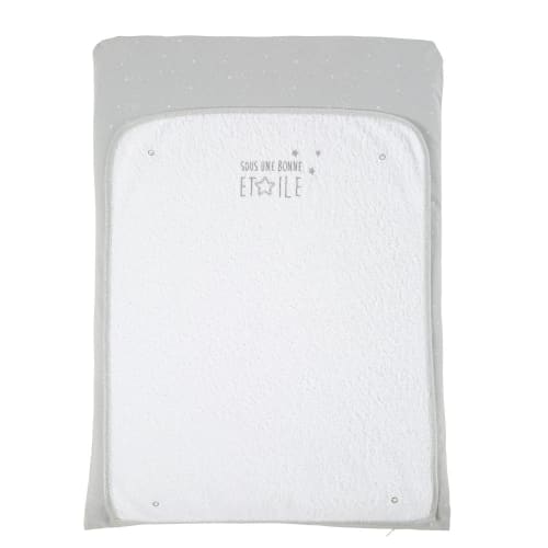 Indispensable en el nidito mullido de tu recién nacido, el colchón cambiador de algodón gris y blanco 52x72 CELESTE encontrará su lugar en un mueble cambiador moderno. Cómodo gracias a su relleno mullido, transforma el cambio de pañal en un momento de bienestar y complicidad. El detalle tendencia: su inscripción delicadamente bordada y su estampado de estrella, que dan todo el encanto a este colchón cambiador de bebé. ¡Nos encanta!