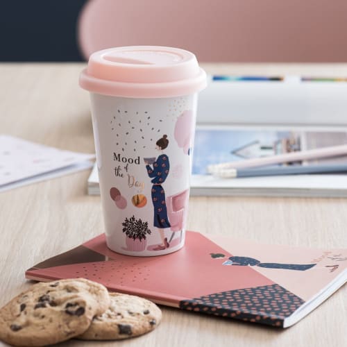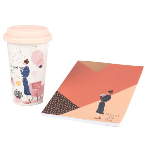 Janet - Estuche de taza de viaje de porcelana estampada y cuaderno de notas
