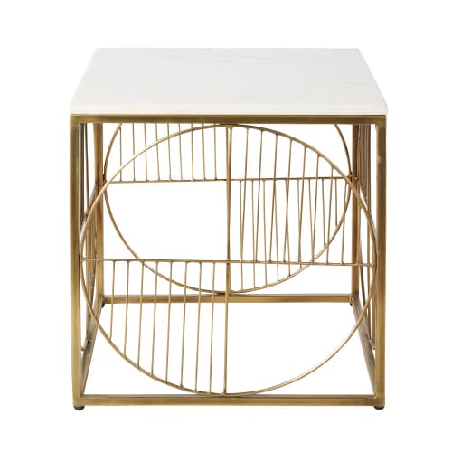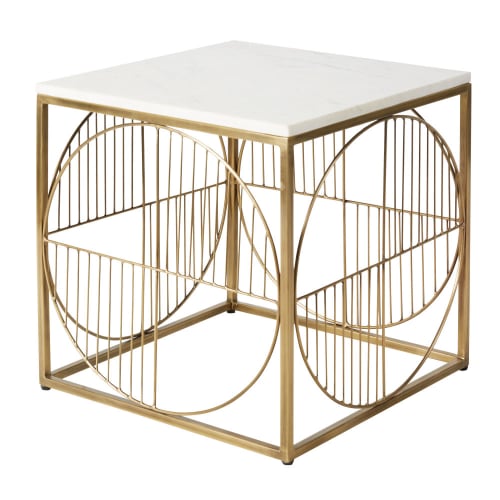 Milano - Mesa auxiliar de metal dorado envejecido y mármol blanco