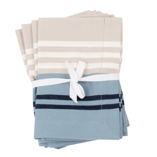 MALOE - Servilletas de algodón con rayas azules, beige y blancas (x4)