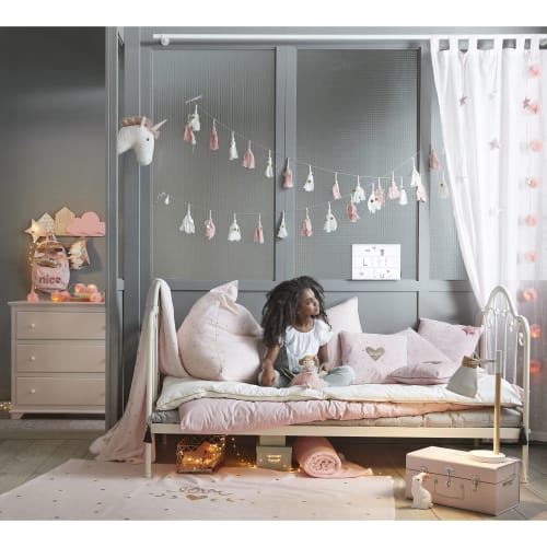 Place au confort avec le pouf enfant rose motifs dorés LILY ! Décoratif et délicat, il séduira votre petite princesse avec son look girly ! Une fois installé sur ce pouf poire, votre fille pourra lire ou se reposer en toute tranquillité. L'atout non négligeable ? Son confort ! Envie de créer un véritable petit nid douillet ? Ajoutez un tapis chaleureux et quelques coussins. Elle va adorer !