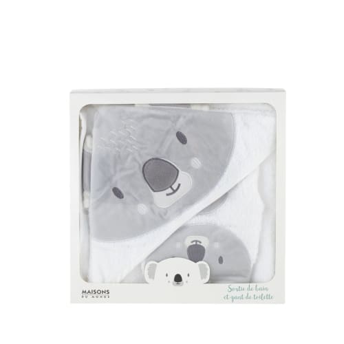 KOALA - Mantella da bagno neonato in cotone bianco e grigio