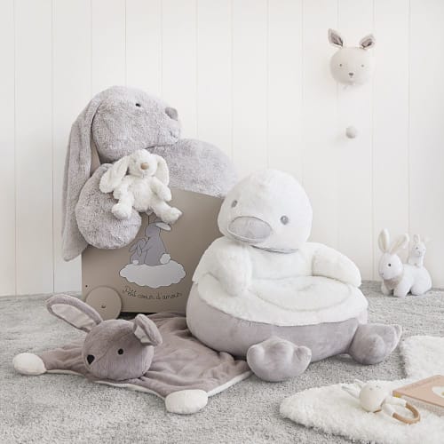 Divertente e delicata, la poltrona anatra écru NOAH accoglierà il tuo bimbo a braccia aperte! Grazie alla struttura ultra soffice e al morbidissimo pelo, questo grosso peluche offrirà una comoda seduta nella sua cameretta. Il vantaggio in più? Il suo color écru e grigio che si integrerà perfettamente in un arredo unisex. Questa poltrona bambino è il regalo ideale per un primo compleanno!