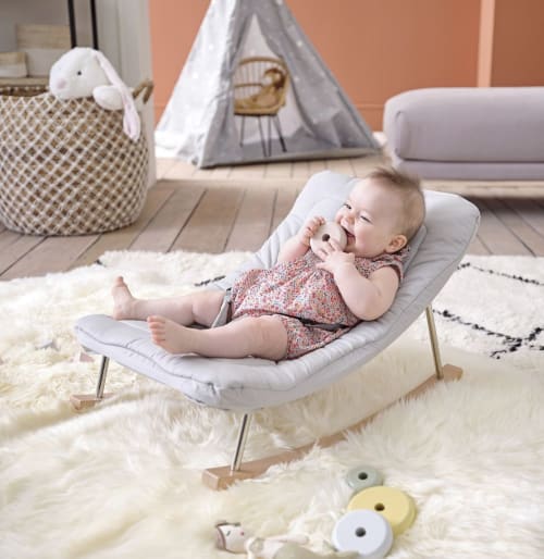 Offri al tuo bimbo comfort e morbidezza grazie alla sdraietta neonato in cotone grigio chiaro CELESTE. Apprezzerai sicuramente il suo aspetto dolce e accogliente che saprà cullare il tuo cucciolo e accompagnarlo nel paese delle meraviglie. Ultra estetica con il suo color grigio chiaro e le gambe in metallo e legno di faggio, coniuga look moderno e tonalità senza tempo. Il pratico sistema di attacco consentirà al tuo angioletto di stiracchiarsi e giocare in tutta sicurezza. Grazie a questa bella sdraietta neonato, tu e il tuo piccolo potrete godervi splendidi momenti di complicità, ovunque voi siate: nella sua cameretta, in cucina mentre prepari piatti prelibati o in salotto per piacevoli momenti di relax. Una seduta che piacerà a grandi e piccini!