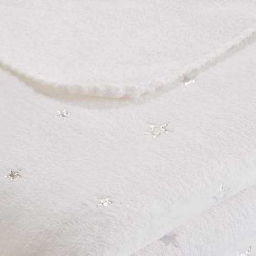 Les petits comme les plus grands craqueront pour le toucher tout doux de ce plaid blanc à motifs argentés.