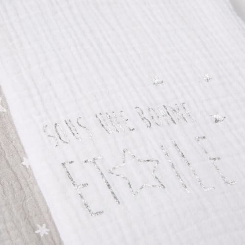 OEKO-TEX® STANDARD 100 gecertificeerde producten garanderen de afwezigheid van stoffen die ongewenst zijn voor de gezondheid en vooral voor de huid. Welke noodzakelijke spullen moet je zeker in je luiertas stoppen? Deze CELESTE 3 luiers van grijs en wit katoen 70x70! Leg deze 3 babyluiers onder de billetjes van je baby tijdens het verschonen of in het reiswiegje om ongelukjes op te vangen. Bovendien zorgt de zachte en moderne print voor een stijlvolle toets. Leuk om te weten! Je kunt deze leuke motiefjes terugvinden in onze CELESTE-collectie.