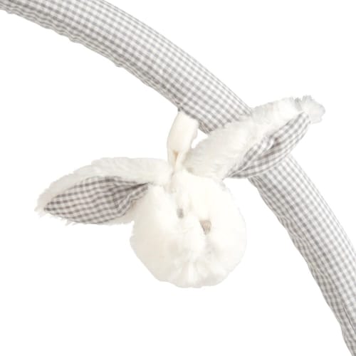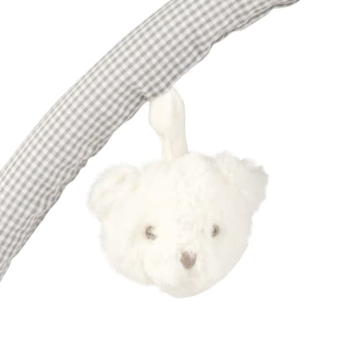 Dit activiteitentapijt, in de vorm van een beer, zal uw baby amuseren en zijn zintuigen aanscherpen vanaf de leeftijd van 2 maand. Dit zeer zachte activiteitentapijt is voorzien van twee verwijderbare bogen die verbonden zijn met ringen en waaraan u kleine accessoires kan hangen. Het decoratief detail: het pluche berenhoofd. Onze tip: voorzie genoeg plaats in de babykamer voor dit tapijt.