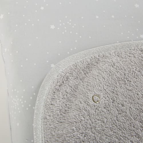 Dit onmisbare CELESTE verschoonkussen van grijs en wit katoen 52 x72 past perfect bij een moderne verschoontafel. Dankzij zijn comfortabele en zachte vulling wordt het verschonen voor jou en je baby een leuk moment. Het moderne detail: het verfijnde geborduurde opschrift en de sterretjesprint geven dit verschoonkussen een leuk accentje. We zijn er dol op!