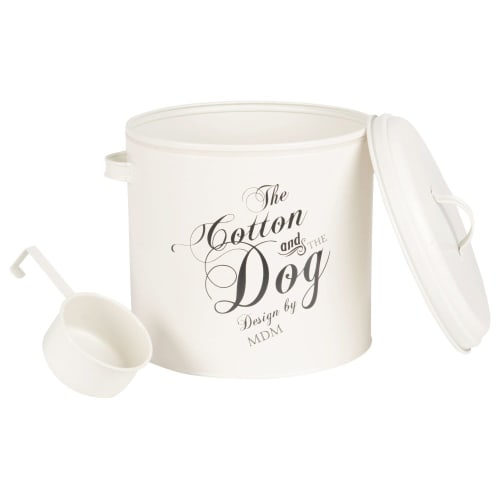 Club - Voerton voor hondenvoer van ecru metaal met zwarte print