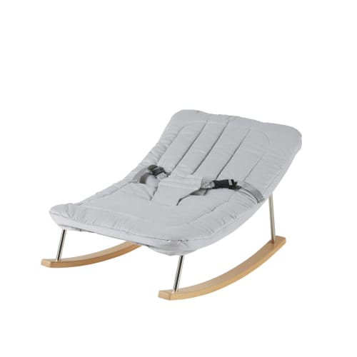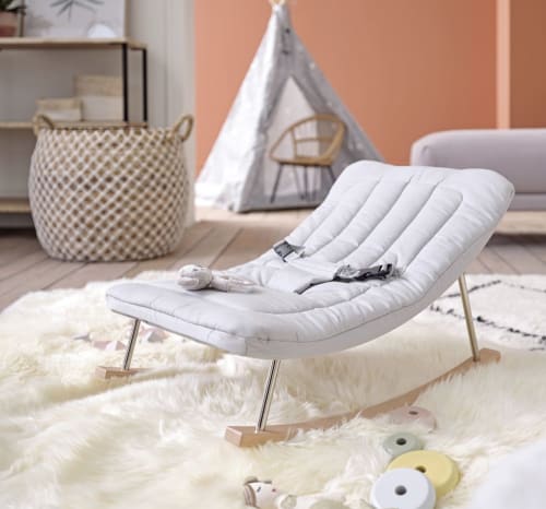 Give your little one comfort and softness with the CELESTE light grey cotton baby lounger. We love its super-cosy look that will cradle your little treasure over hill and dale. Its pale grey colour and metal and beech legs make it very attractive, combining a modern look with a timeless colour. Its harness allows your baby to stretch and play in total safety. It allows you to enjoy special times together wherever you are: when you set up this pretty baby lounger in the nursery, in the kitchen when you're cooking up something delicious or in the sitting room when you're relaxing. A guaranteed hit with parents and babies!