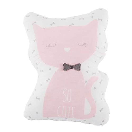 Berlioz - Printed Pink Cotton Cat Cushion H30