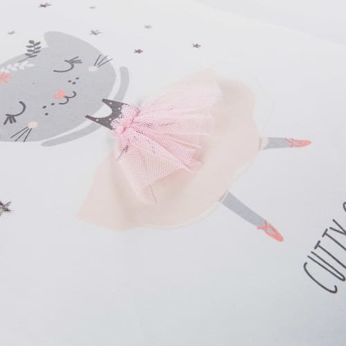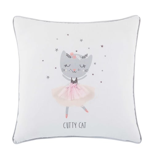 Budding star dancers will love this double-sided cushion featuring a ballerina cat motif and on-trend geometric print.
