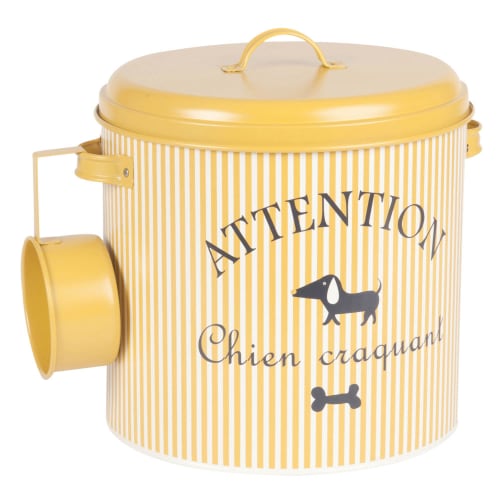Graphik - Recipiente para comida de cão de metal amarelo-mostarda às riscas
