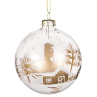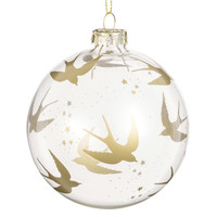 Glass Christmas Bauble with Gold Swallow PrintSet of 6
