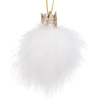 White Feather Christmas Bauble with Gold CrownSet of 6